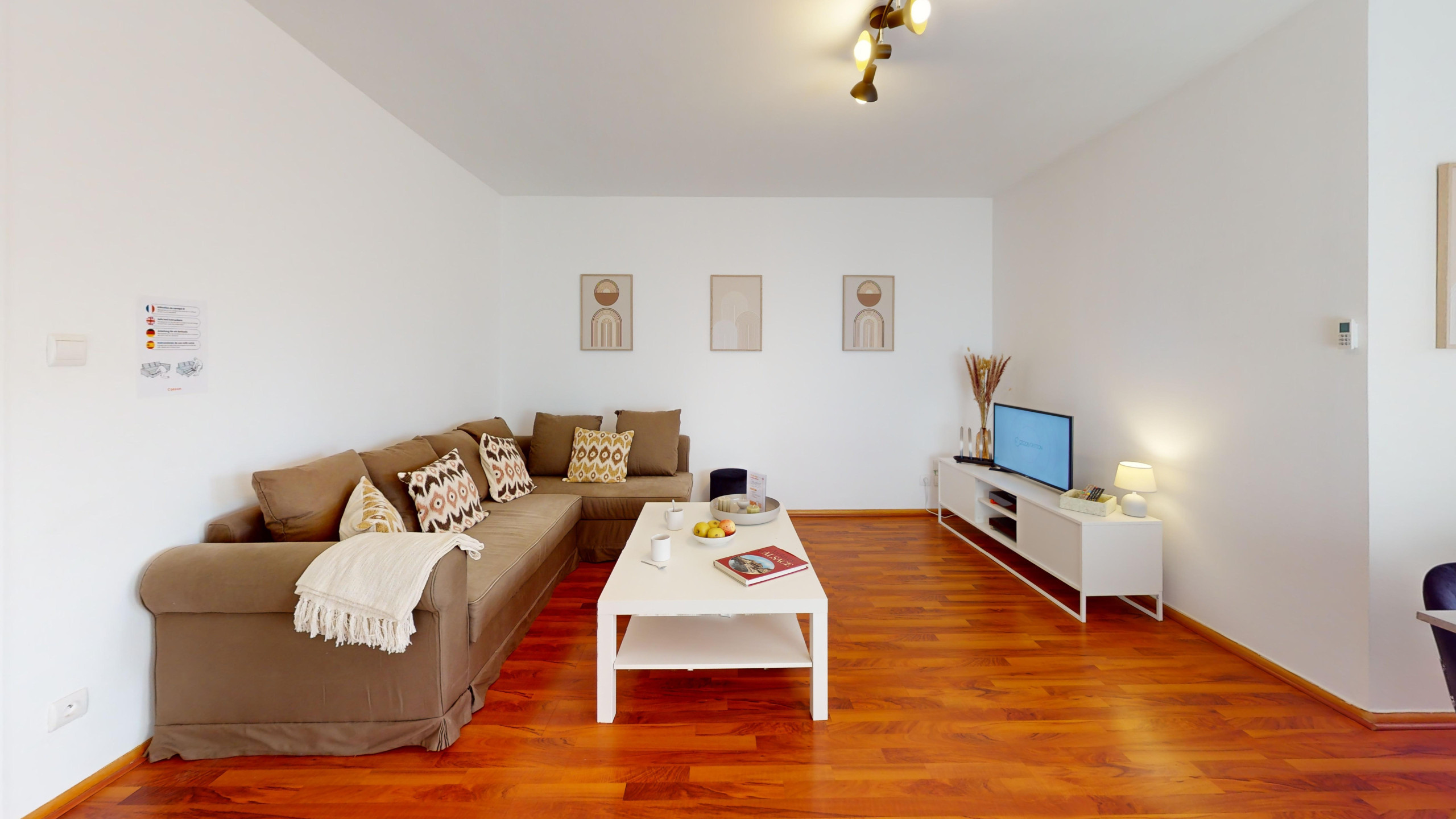 Kostenloser WLAN-Zugang ist in der Wohnung verfügbar. Der Benutzername und das Passwort werden vor dem Fernseher angezeigt.