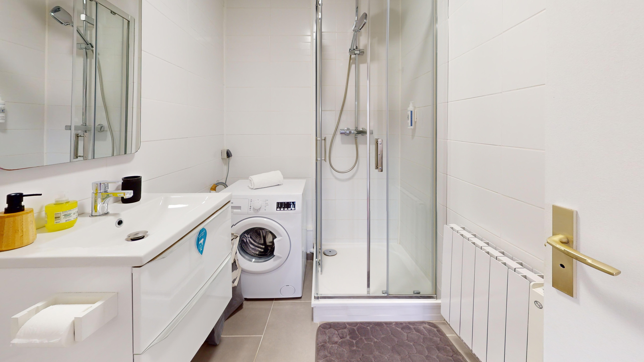 - Badezimmer: Dusche, WC, Waschmaschine