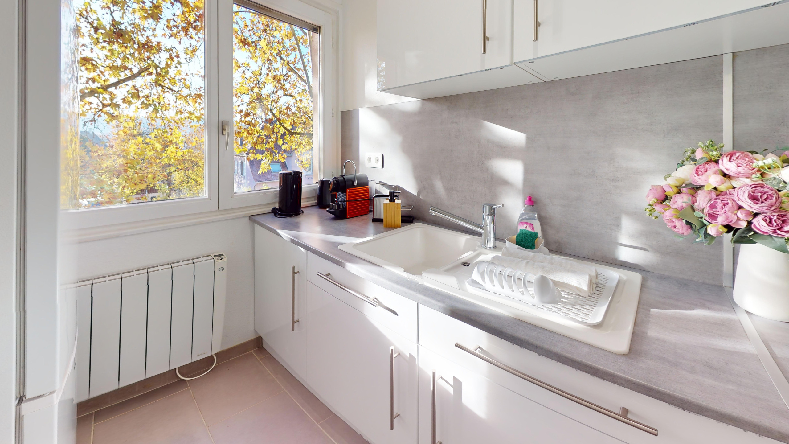 - Ausgestattete Küche: Glaskeramikkochfeld, Ofen, Kühl-/Gefrierschrank, Nespresso-kompatible Kaffeemaschine, Wasserkocher, Mikrowelle, Toaster