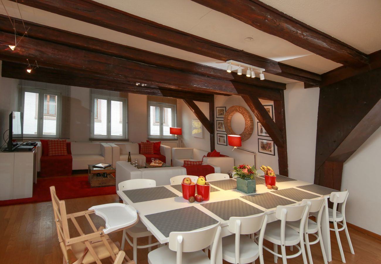 🥨 Im Herzen der Innenstadt von Colmar ist das 160 m² große Maisonette-Apartment HERZOG ideal für einen Aufenthalt mit Familie, Freunden, Kollegen, für ein Wochenende, einen Urlaub oder eine Arbeit. Mit diesen 5 Schlafzimmern und 3 Bädern bietet die Wohnung Platz für bis zu 12 Personen.