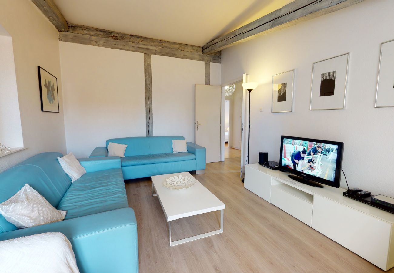 Im historischen Herzen von Colmar, in einer der prestigeträchtigsten Gassen der Stadt gelegen, besteht die komplett renovierte und neu eingerichtete Dreizimmerwohnung aus zwei Schlafzimmern, einem geräumigen Wohnzimmer mit Fernseher, DVD- und CD-Player, ein Badezimmer mit Badewanne, ein separates WC und eine voll ausgestattete Küche mit allem modernen Komfort.
