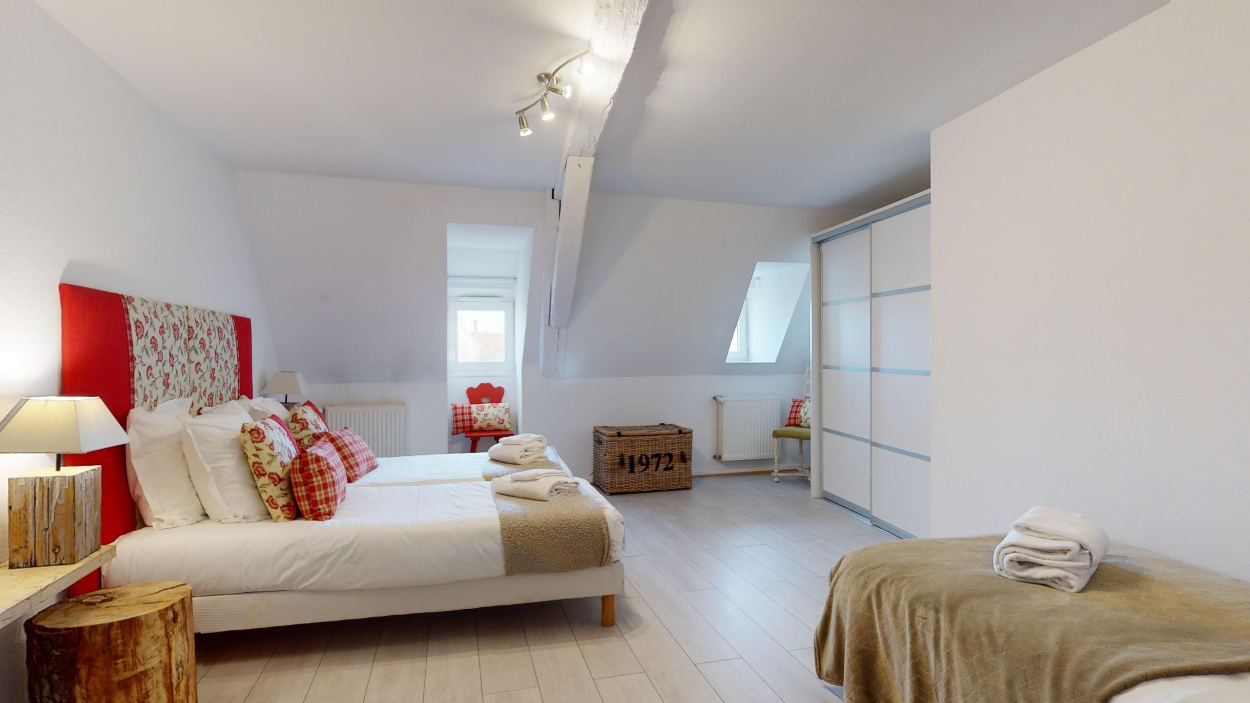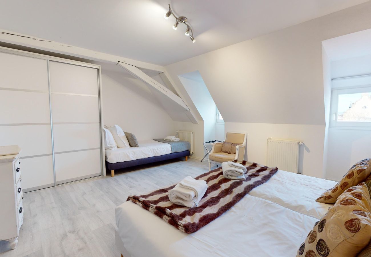 🥨 In the heart of downtown Colmar, the 165m2 DREYFUS duplex is ideal for a stay with family, friends, colleagues, for a weekend, vacation or work. With these 3 bedrooms and 2 bathrooms the apartment can accommodate up to 10 people.