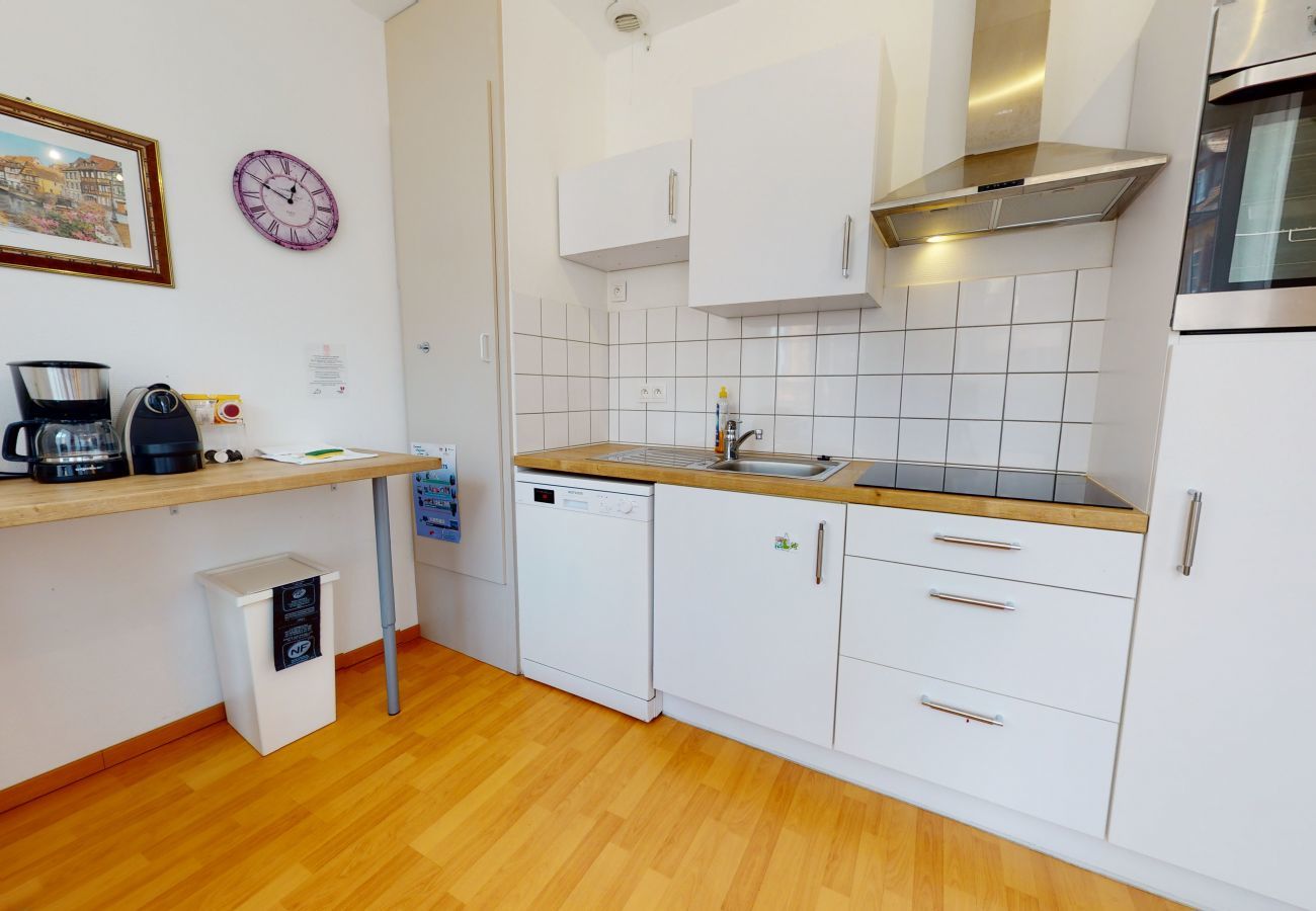 However, it is up to you to clean and put away the dishes, take down the trash cans, empty the fridge, freezer, dishwasher, oven, microwave as well as tidy up inside the apartment. If you do not want to take care of this, you can order a supplement called "complete cleaning" of the apartment before your arrival for 30€. In the absence of prior reservation of this option, and in the event of non-compliance with these instructions, penalties of €60 for cleaning costs will be invoiced to you.