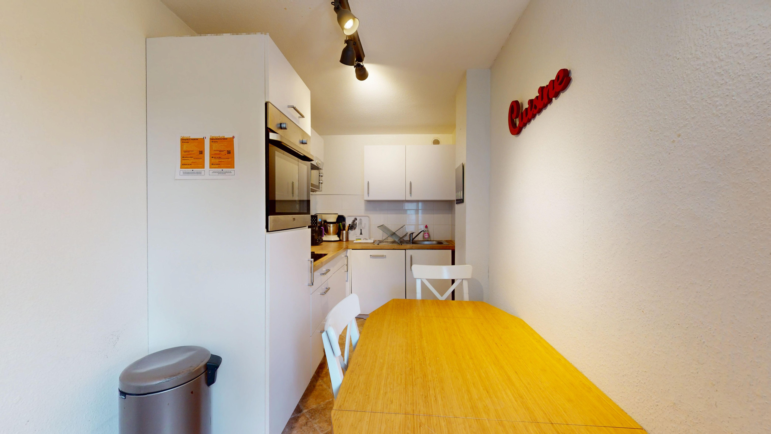 🧹 However, it is your responsibility to clean and put away the dishes, take out the trash, empty the refrigerator, freezer, dishwasher, oven, microwave as well as tidy up inside the apartment. If you do not want to take care of this, you can order a supplement called “complete cleaning” of the apartment before your arrival for €30. In the absence of prior reservation for this option, and in the event of non-compliance with these instructions, you will be charged a penalty of €60 cleaning costs.