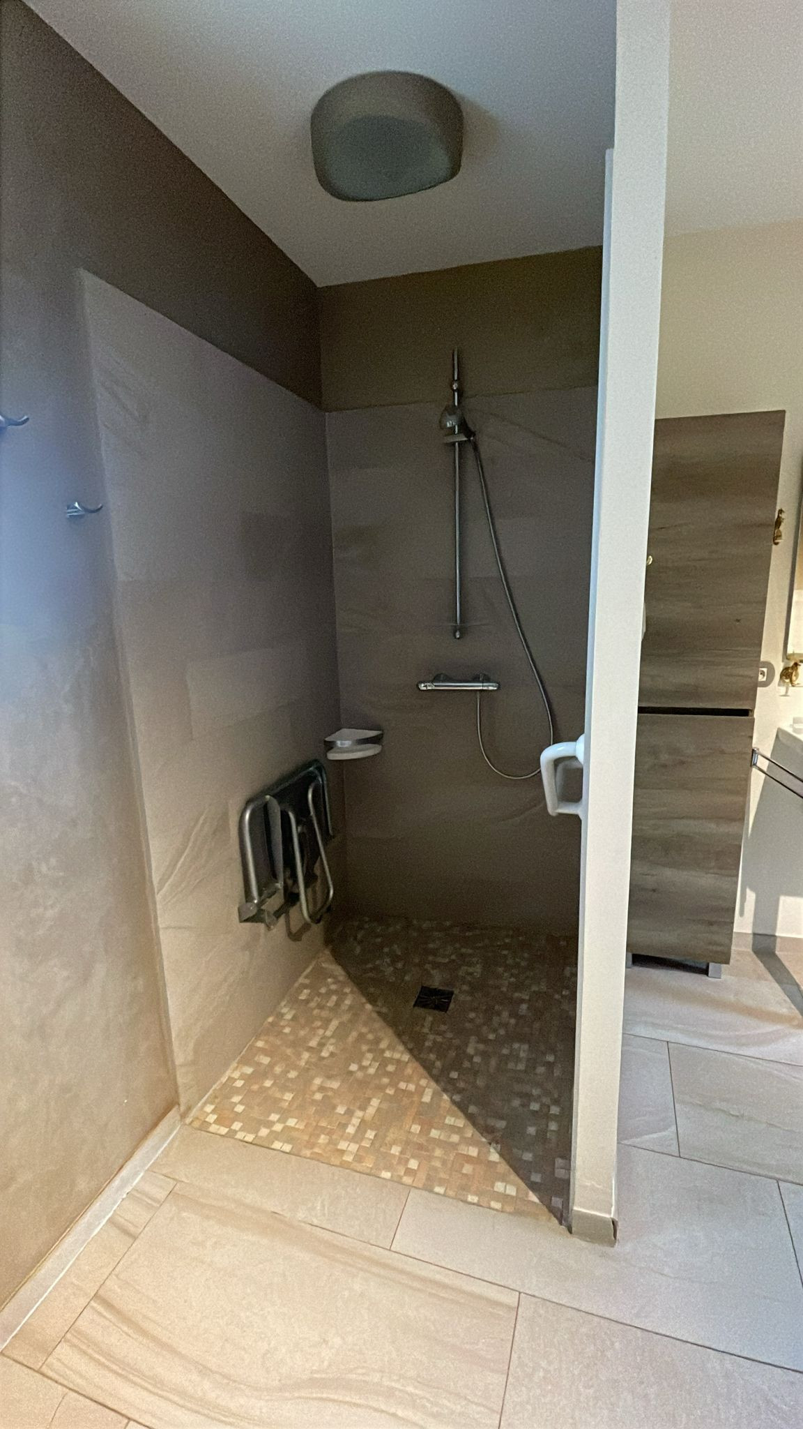 🚿🚾 A spacious bathroom with a walk-in shower and WC.