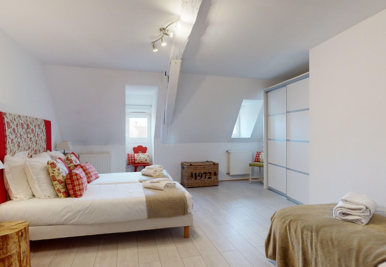 🥨 En el corazón del centro de Colmar, el dúplex DREYFUS de 165 m2 es ideal para una estancia en familia, con amigos, con colegas, para un fin de semana, de vacaciones o de trabajo. Con estos 3 dormitorios y 2 baños el apartamento tiene capacidad para 10 personas.