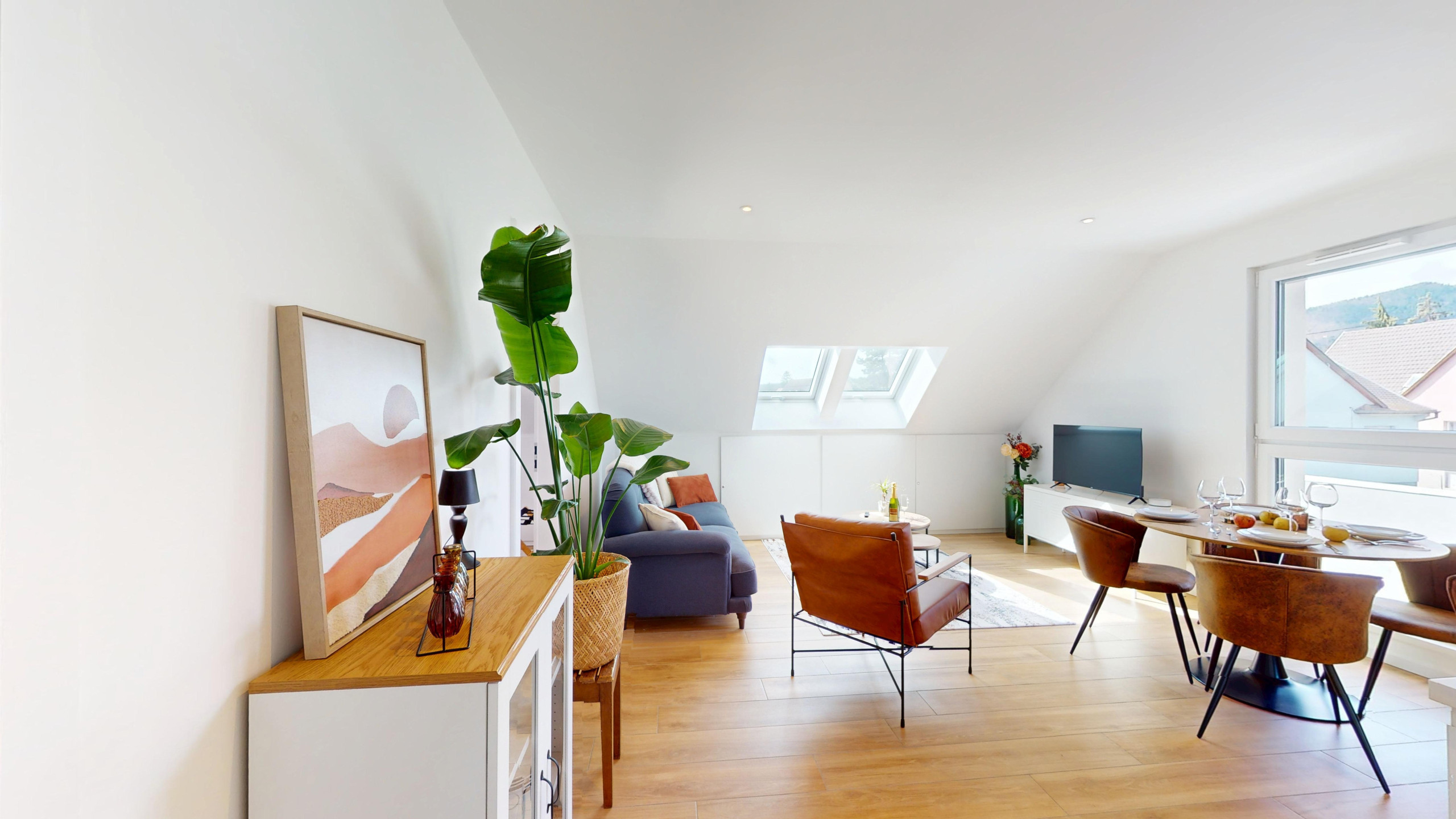 Situado en un barrio tranquilo, la vivienda ofrece un entorno apacible y una vista de las montañas y la naturaleza circundante, características de los paisajes del viñedo alsaciano.