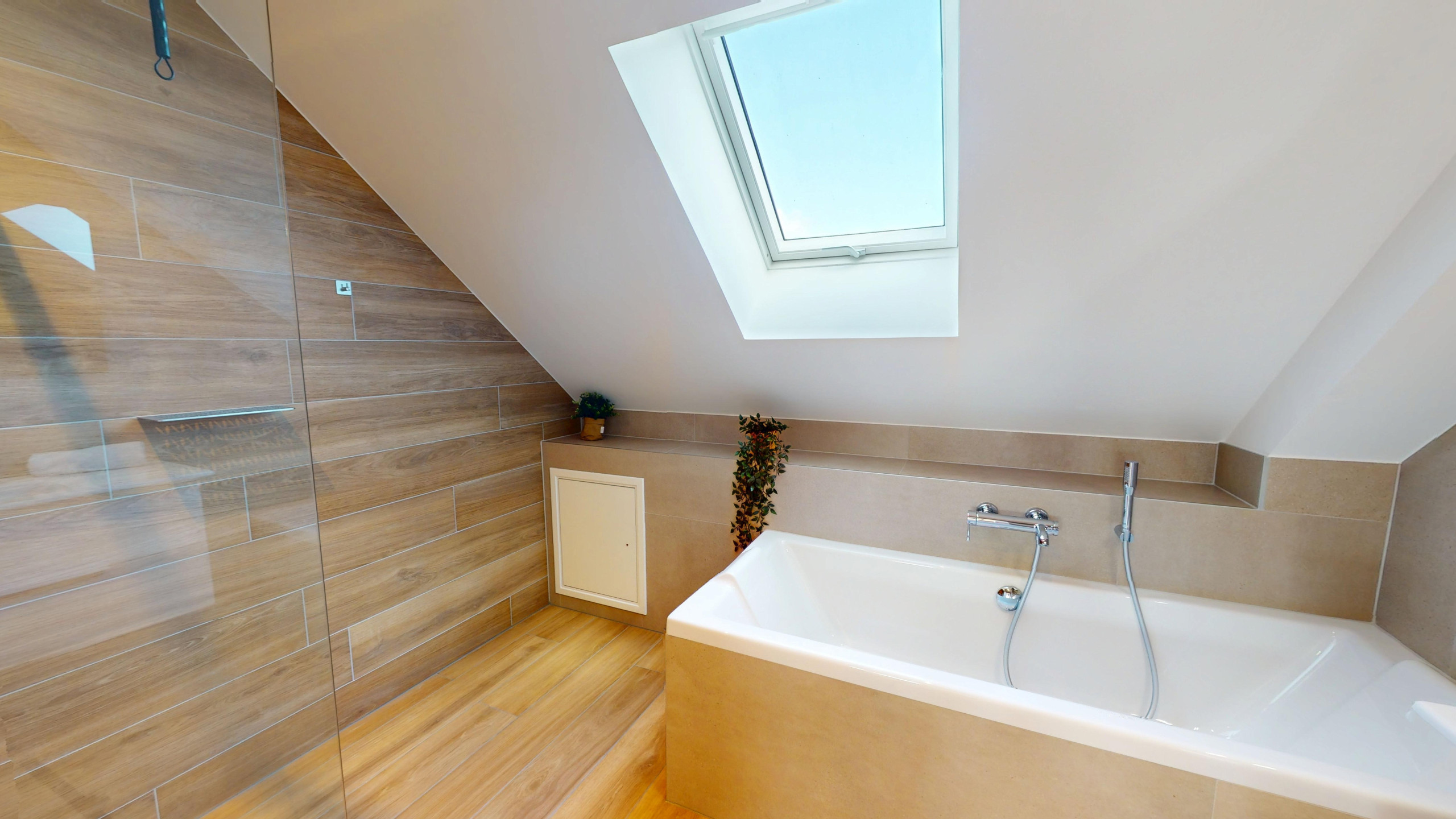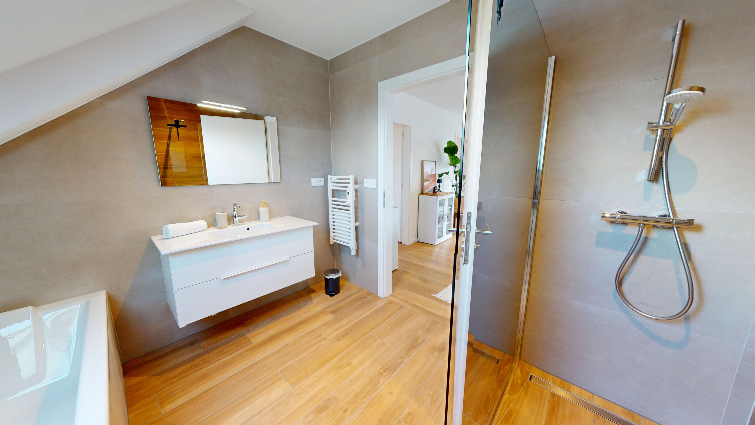 El baño, equipado con una ducha y una bañera, permite adaptarse a todas las necesidades, ya sea para una estancia en pareja, entre amigos o en familia. Un secador de pelo también está a su disposición.