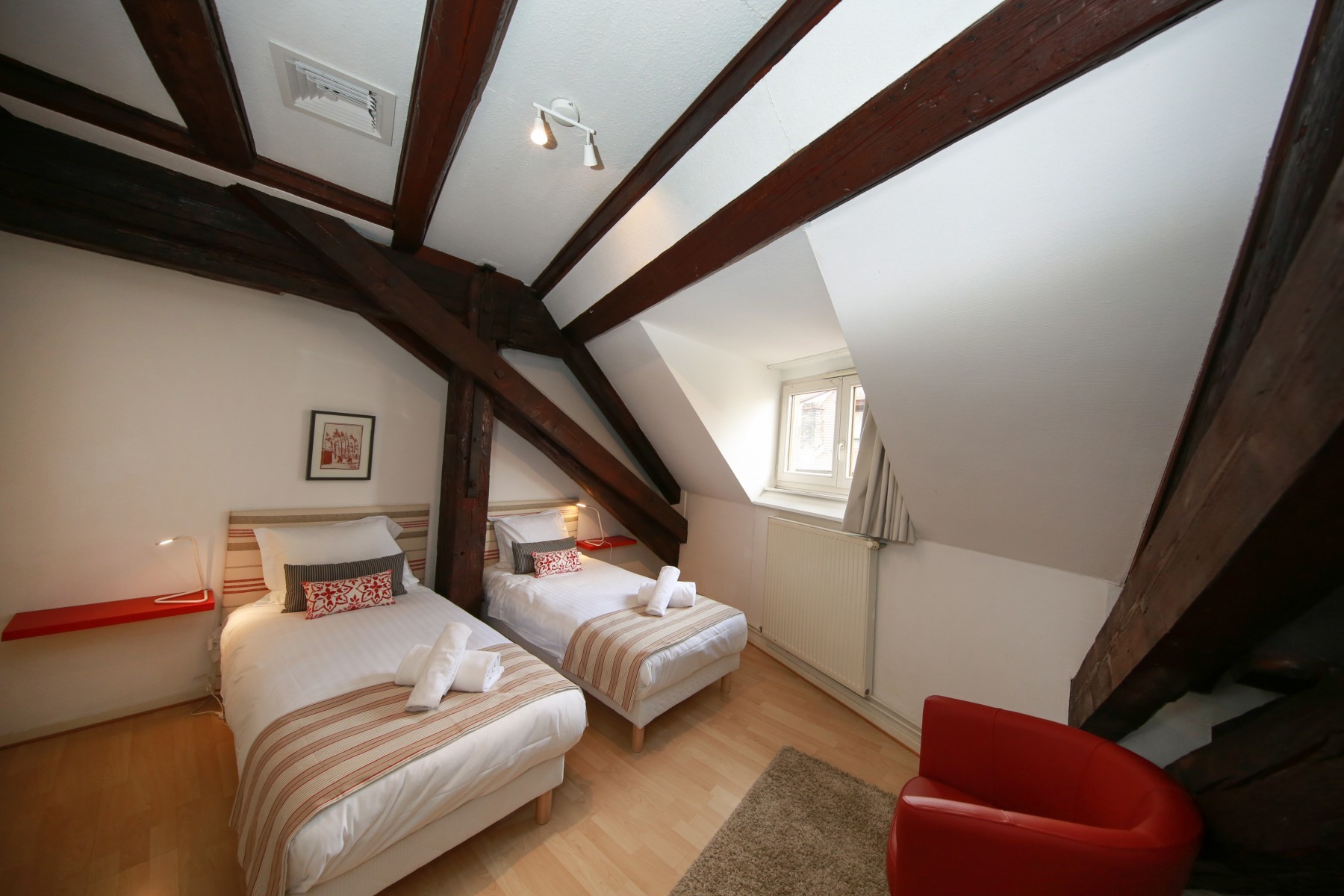 Excellent location steps from the town center, in the midst of shopping. Dripping with character with timbered beams and dormers. Very spacious, comfortable flat.