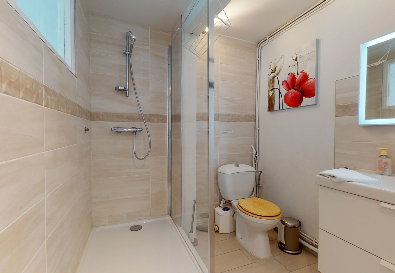 🏠Ce charmant appartement complètement rénové, moderne et cosy est équipé d'une salle de bain avec douche 🚿, d’une petite cuisine équipée 🍽️ (four, plaques et réfrigérateur), une machine à laver, un coin séjour avec un canapé-lit de 160 cm 🛋️, une télévision écran plat, la wifi et une chambre spacieuse avec un lit double de 140 cm 🛏️.