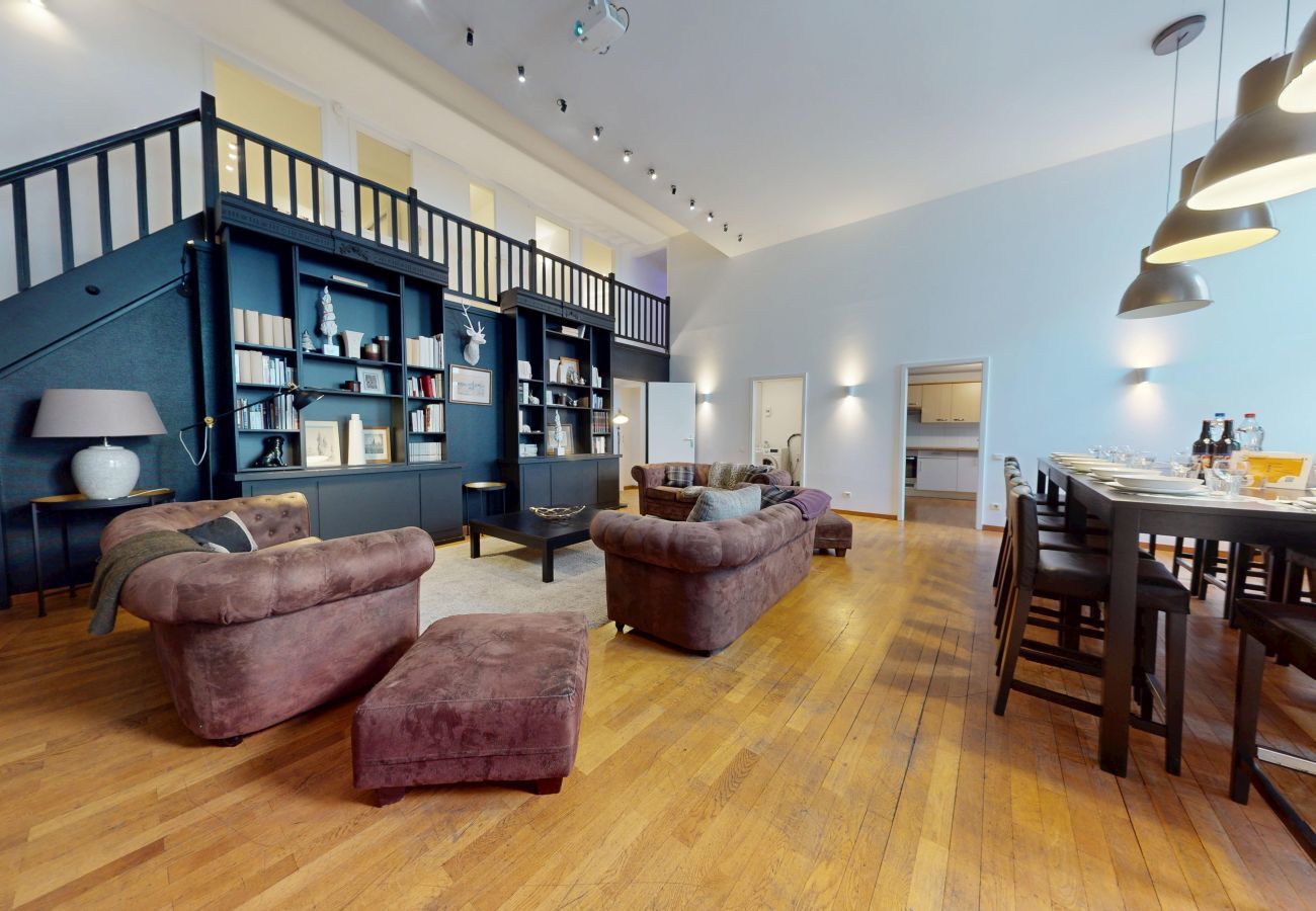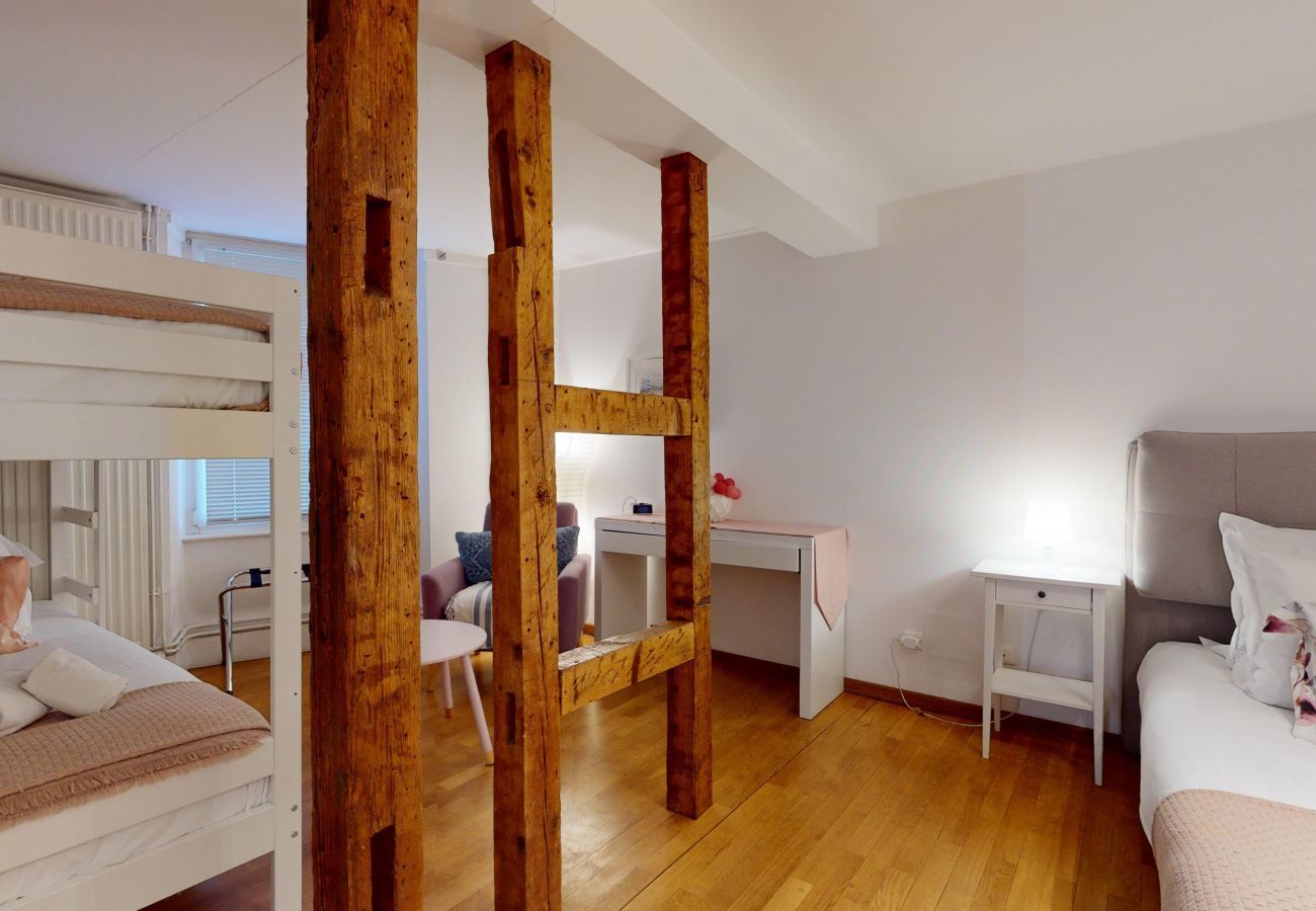 🥨 Au cœur du centre-ville de Colmar, l’appartement Duplex HAUSSMANN de 225m2 est idéal pour un séjour en famille, entre amis, entre collègues, pour un week-end, des vacances ou le travail. Avec ses 5 chambres ainsi que ses 4 salles de bain l'appartement peut accueillir jusqu'à 15 personnes.