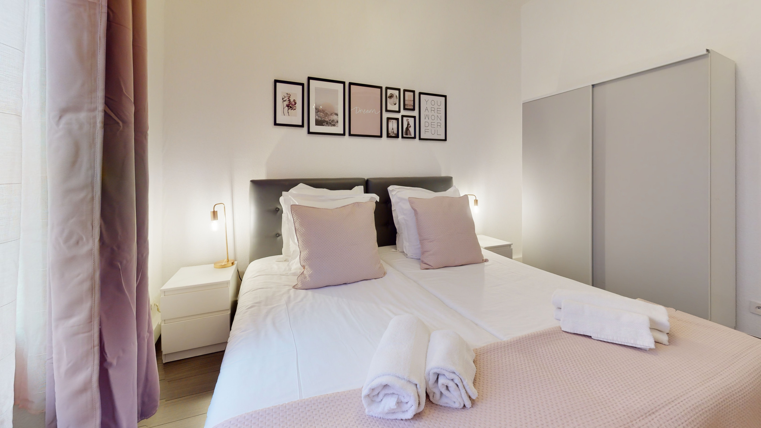 🛏️La seconde chambre vous offre également 2 lits simples (90cm sur 190cm chacun) et une armoire de rangement, cette fois décorée dans des tons roses.