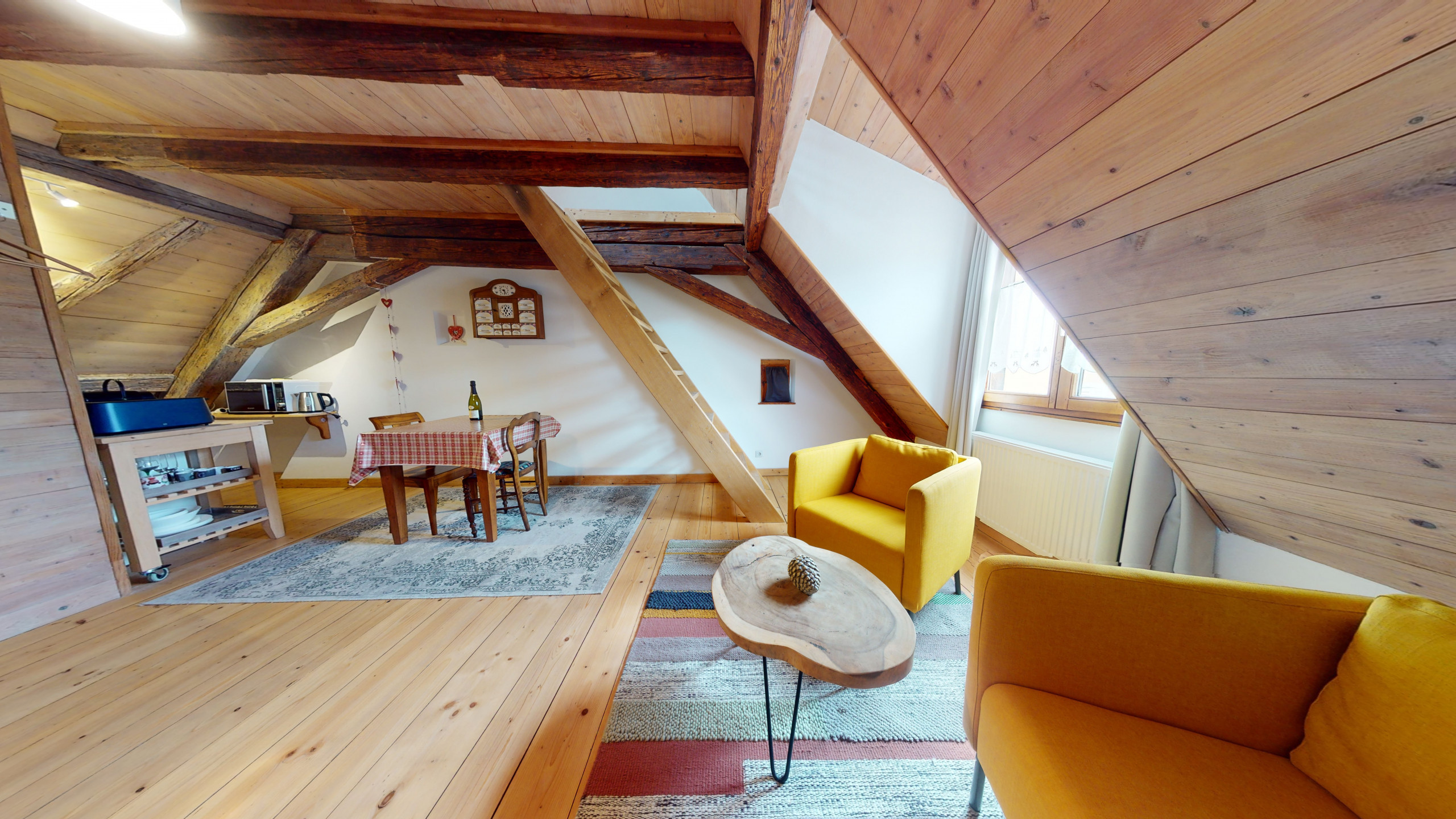 🏡 L’appartement Manala 1 se trouve au deuxième étage d’une demeure Alsacienne. 🪜 L’accès se fait avec des escaliers en bois d’époque (raide et biscornue)