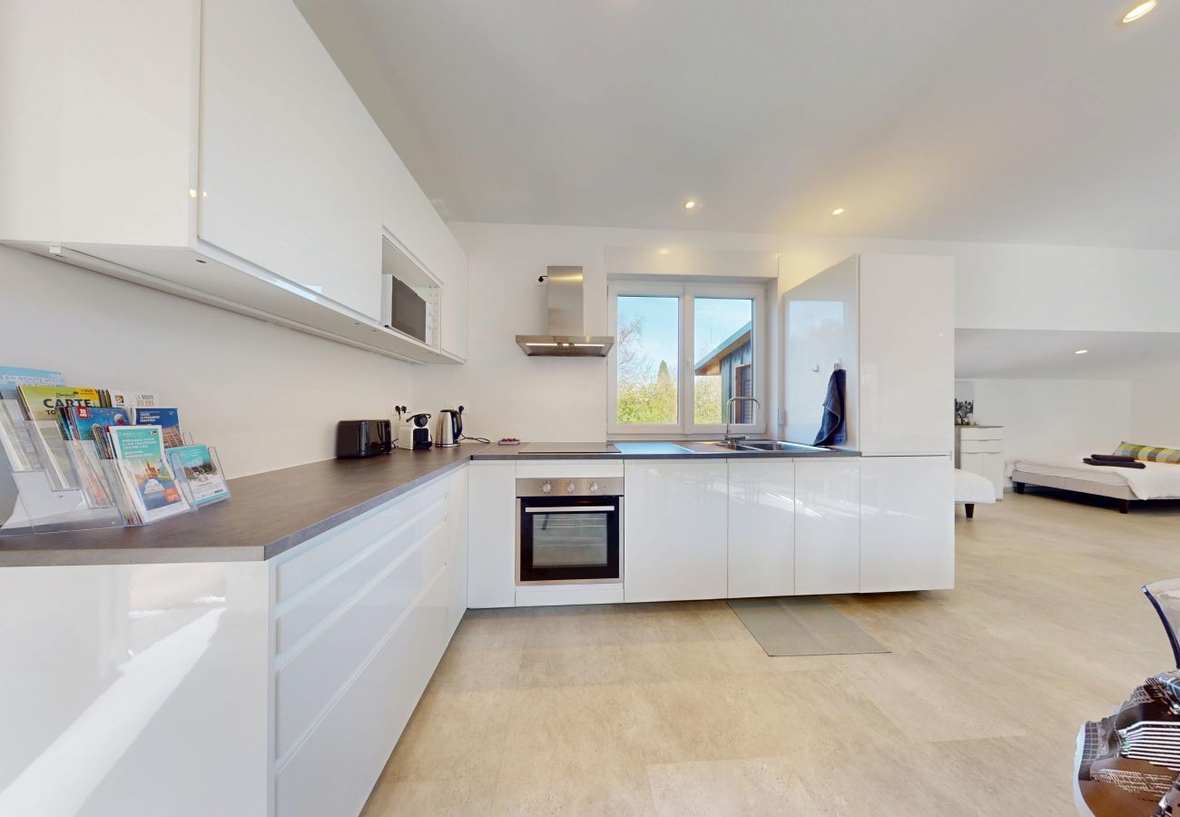 🛋️ 🍽️ Une grande pièce de vie disposant d'une cuisine américaine ( réfrigérateur/congélateur, plaque de cuisson, four, lave-vaisselle, bouilloire, cafetière Nespresso classique, grille-pain) avec une grande table pour partager vos repas.