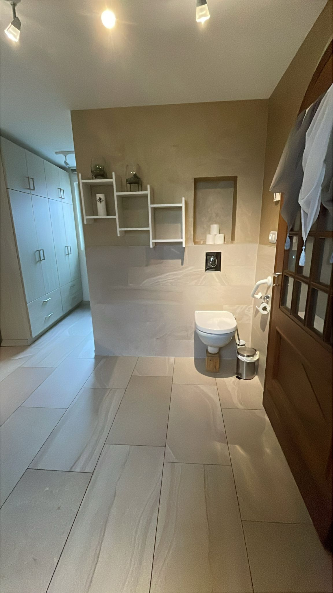 🚿🚾 Une salle de bain spacieuse avec douche à l’italienne et WC.