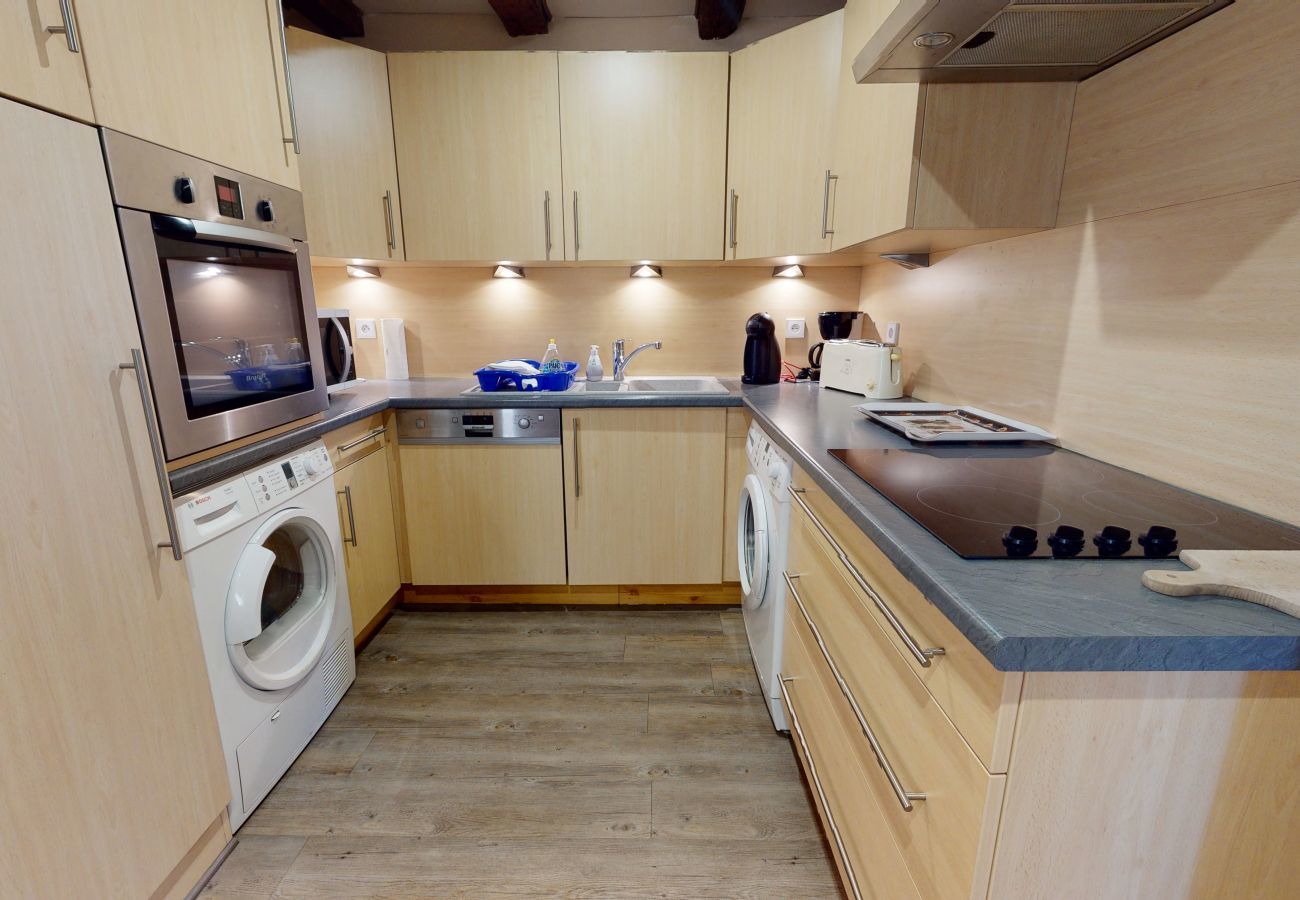 🍽️ La cuisine est équipée (réfrigérateur, four, micro-onde, plaque de cuisson, hotte, lave-vaisselle, lave-linge, sèche-linge, cafetière, bouilloire, grille-pain, poêles, casseroles, vaisselles et ustensiles de cuisine).