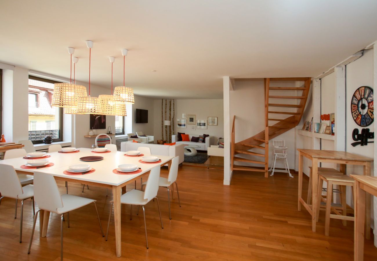 🥨 In the heart of downtown Colmar, this 165m2 duplex has 4 bedrooms, 3 of which as well as a living room are air-conditioned. Ideal for a stay with family, friends, colleagues, for a weekend, vacation or work. With these 4 bedrooms and 3 bathrooms, the apartment can accommodate up to 10 people.
