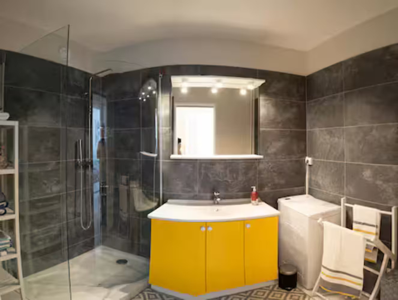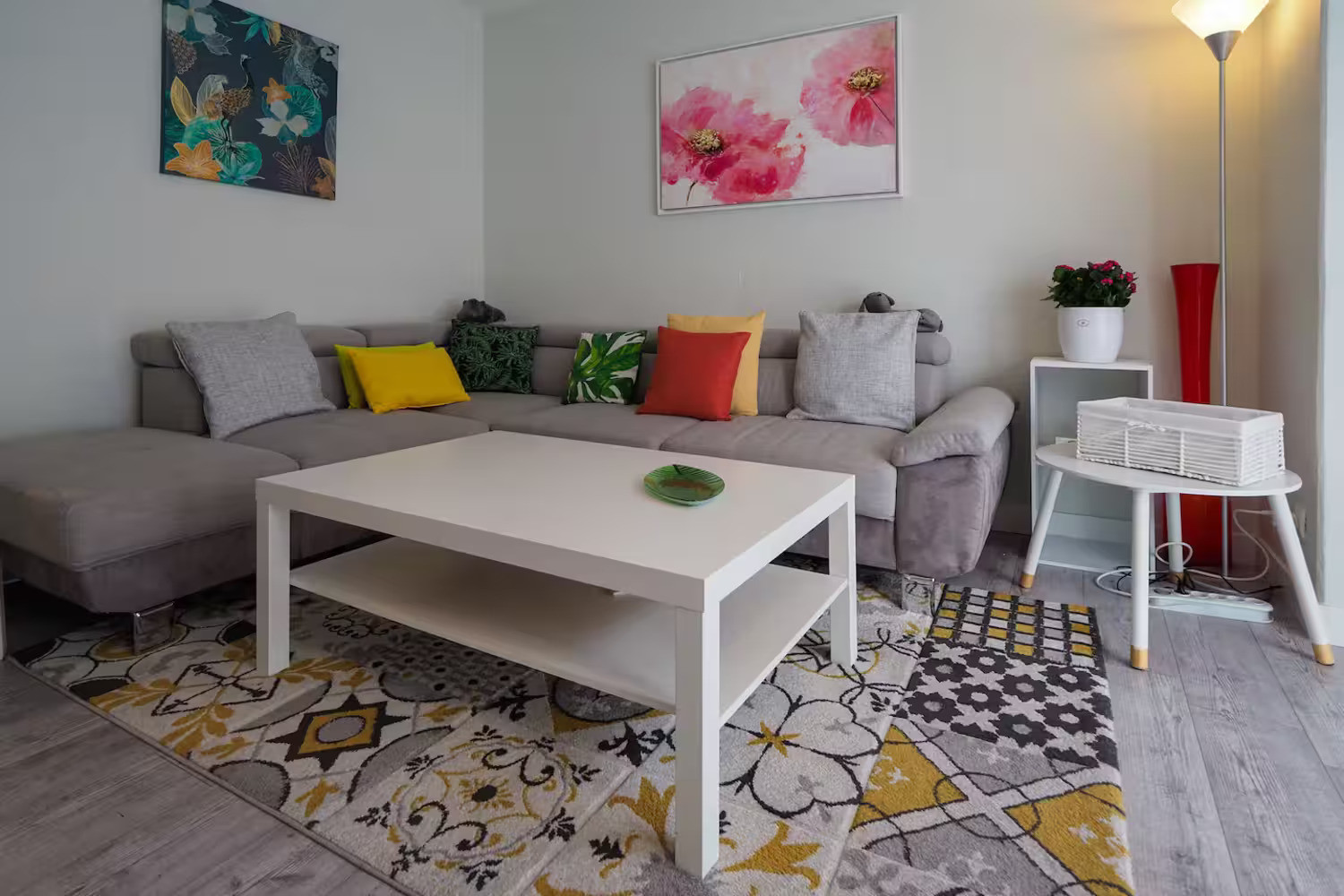 这个公寓有2个卧室,一个带有平面电视的客厅,一个配备冰箱和烤箱的全功能厨房,以及1个带淋浴的浴室。提供毛巾和床上用品。