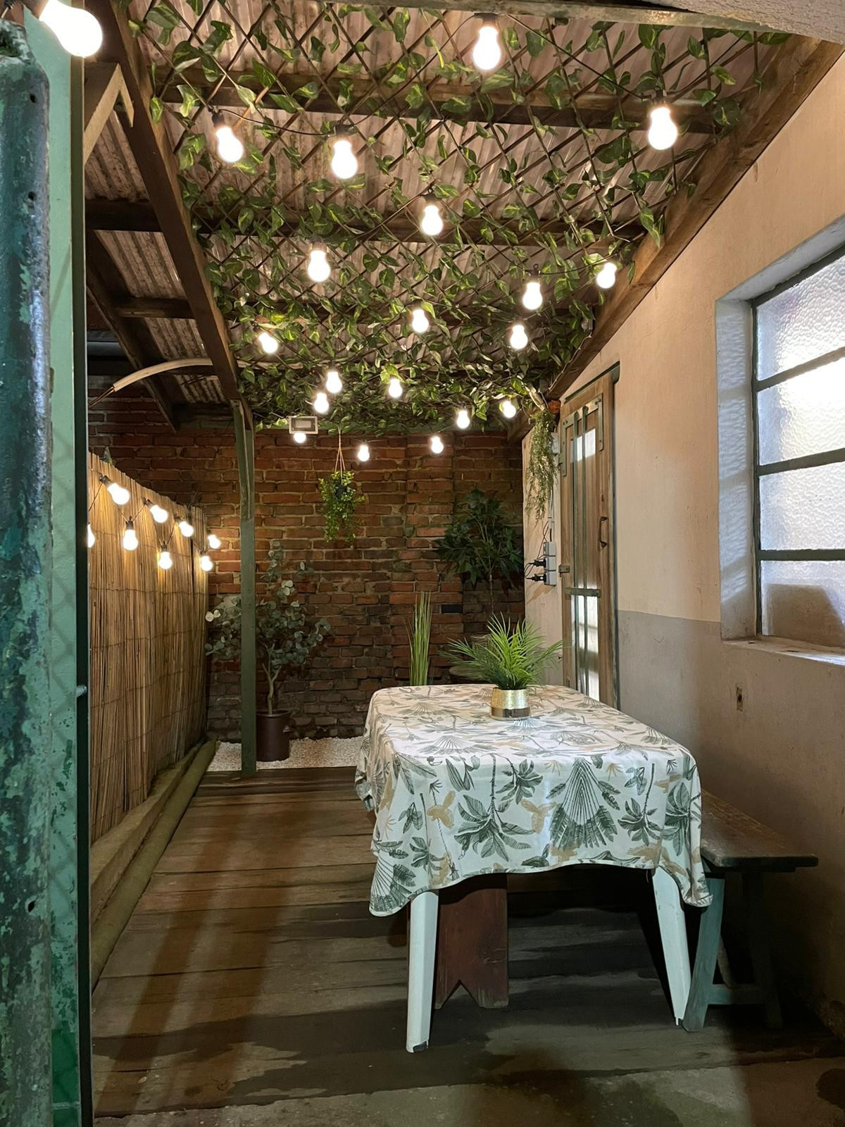 住房有一个带有桌子和长凳的小露台。